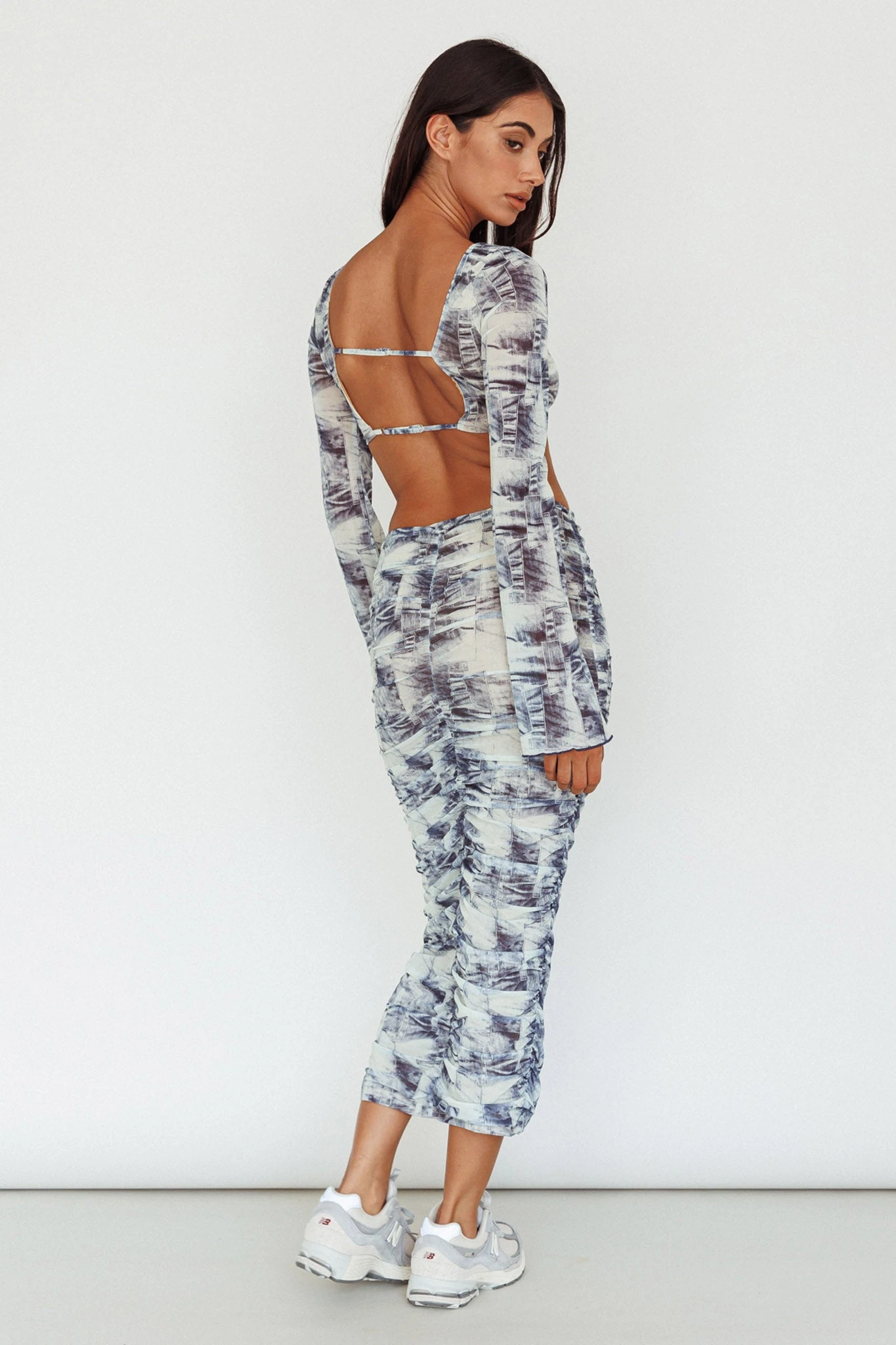 You will stop traffic in our super hot Blue Moons midi skirt. We are in love with its trendy print and ruching detail to accentuate your curves. Perfect for Friday night at your fave rooftop teamed with its matching crop top and boots.