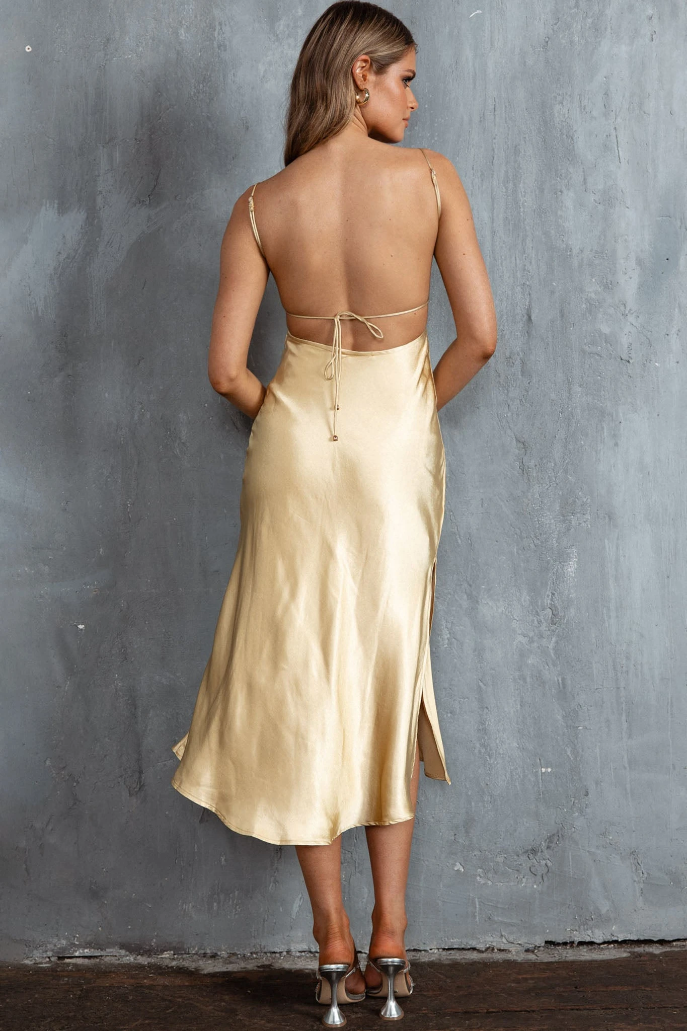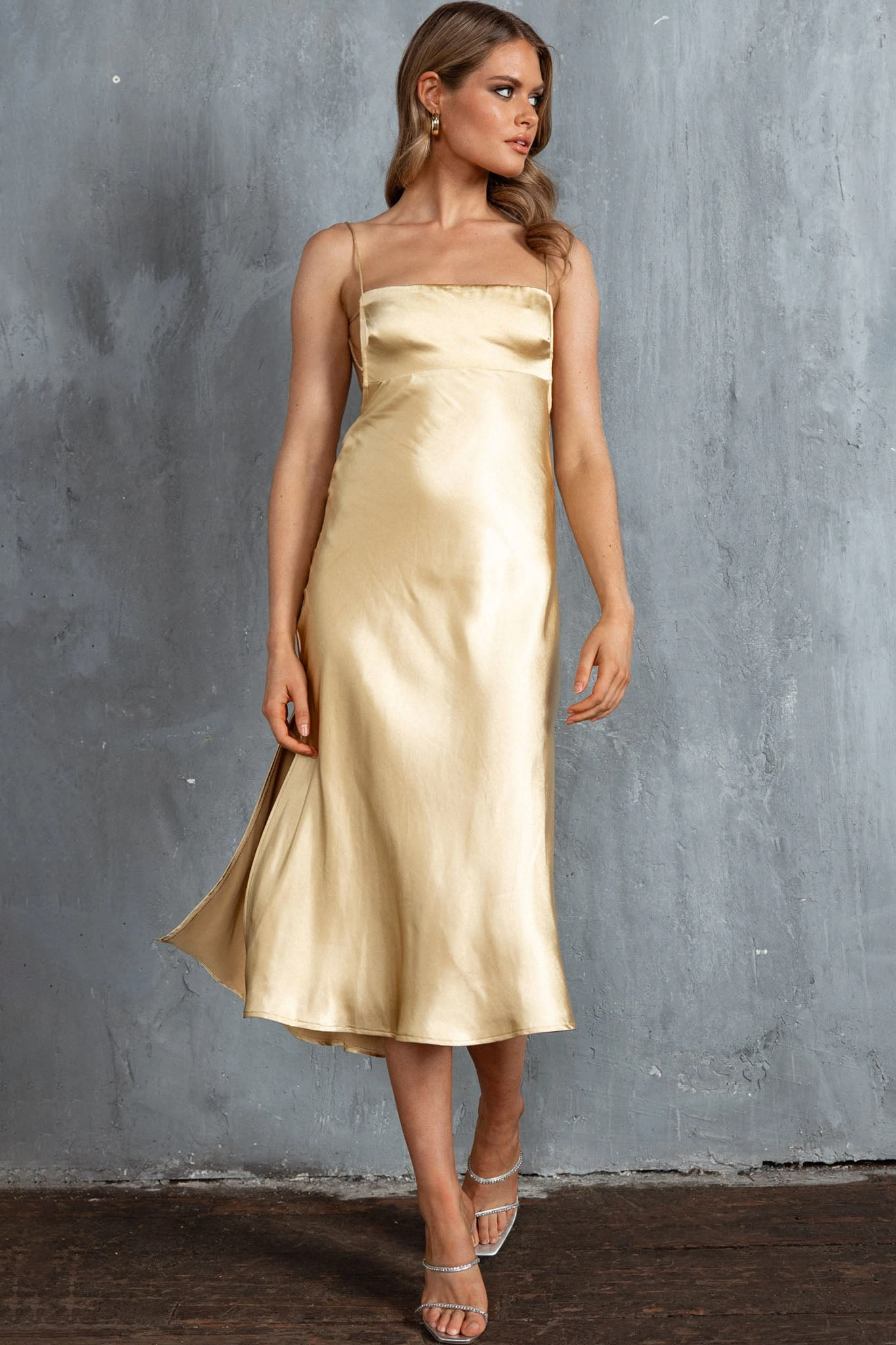 - Lemon, satin midi dress