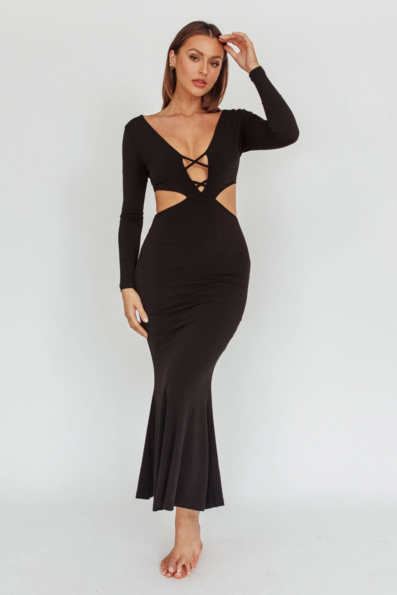 You’ll go straight to the best-dressed list in our hot Dress Codes maxi dress. Featuring long sleeves and cut-out detail in the bodice. It’s perfect for dinner and cocktails with your girls teamed with black heels and a purse for a look we are crushing on.