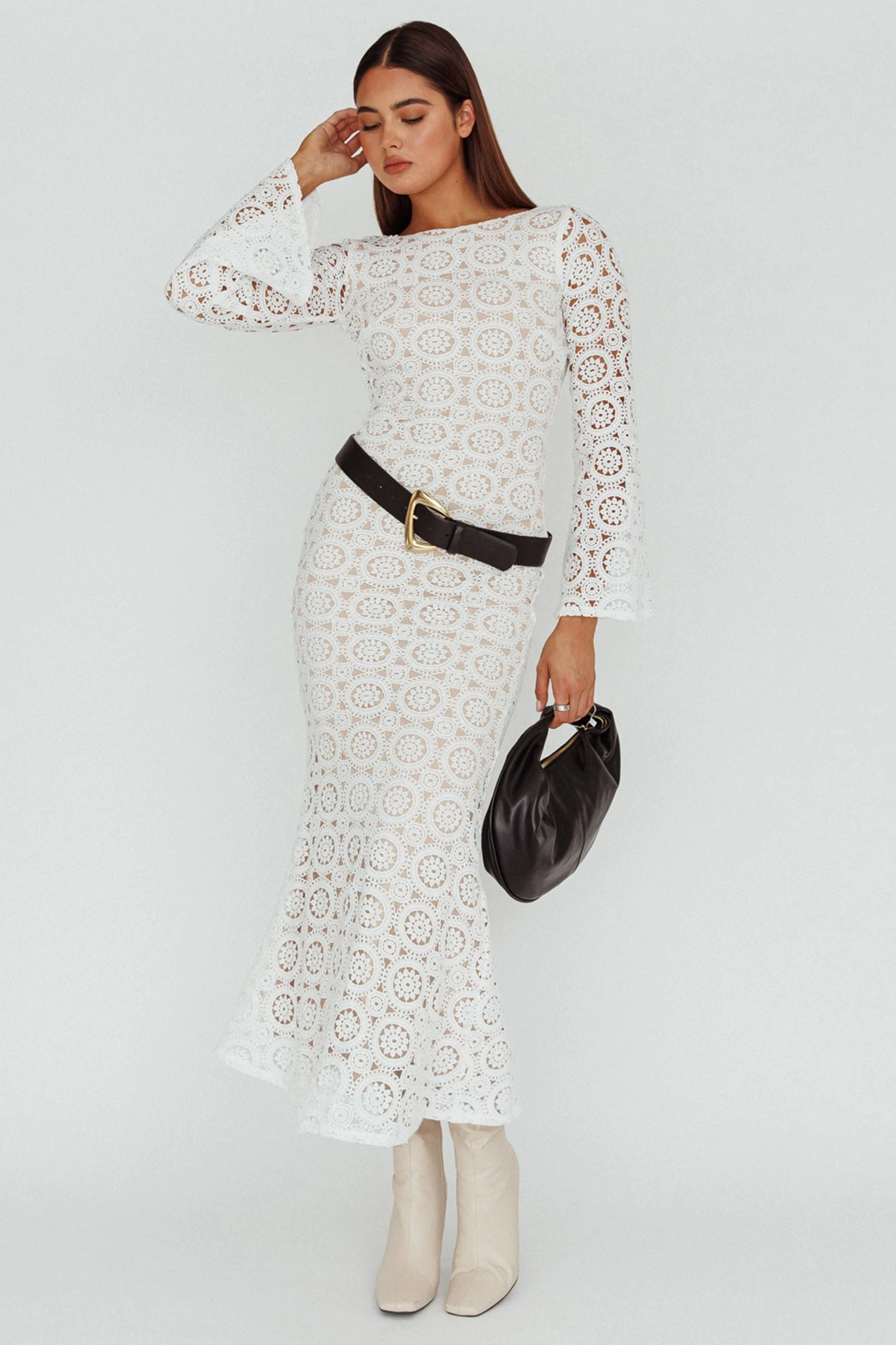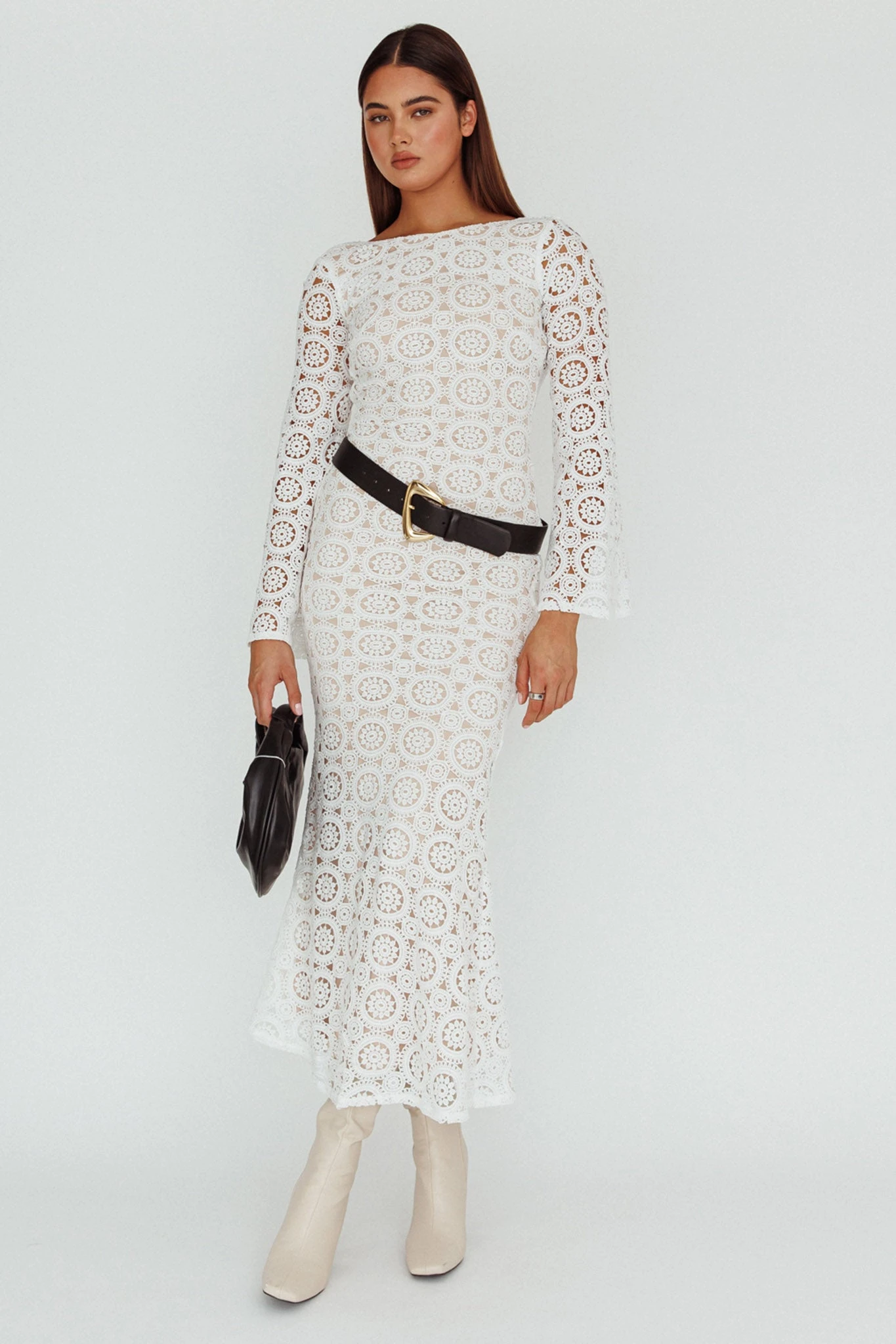 Turn heads in our super cute Kasia maxi dress. We are obsessed with its boho babe crochet knit and open back. Perfect for sunset happy hour with your besties teamed with wedges and a woven tote.