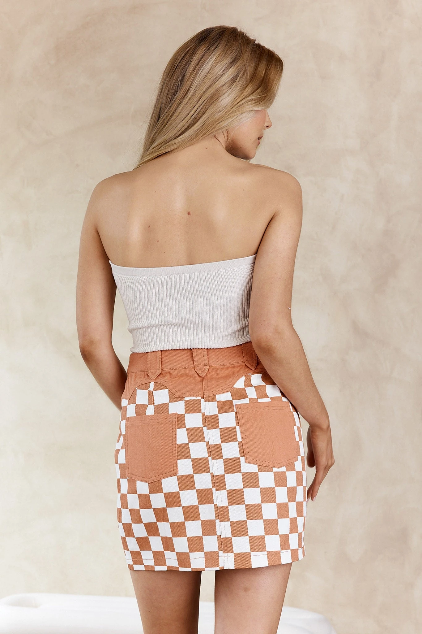 Turn heads in our super cute Rewind mini skirt. We are obsessed with the zipped front and cool, checkerboard pattern. Perfect for weekend mimosa lunching with your girls. Team it with a white singlet top and western boots for a look we are loving.