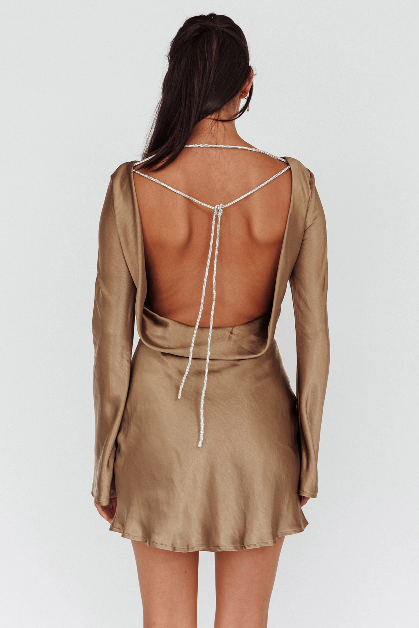 They’ll hate to see you go, but they’ll love to watch you leave in our Thank Me Later dress. Featuring long sleeves and a sexy, open back with diamante rope detail. Wear it on a girls’ night out, sipping cocktails and flirting with Mr. Tall, Dark & Handsome. Team it with strappy heels to complete the look.