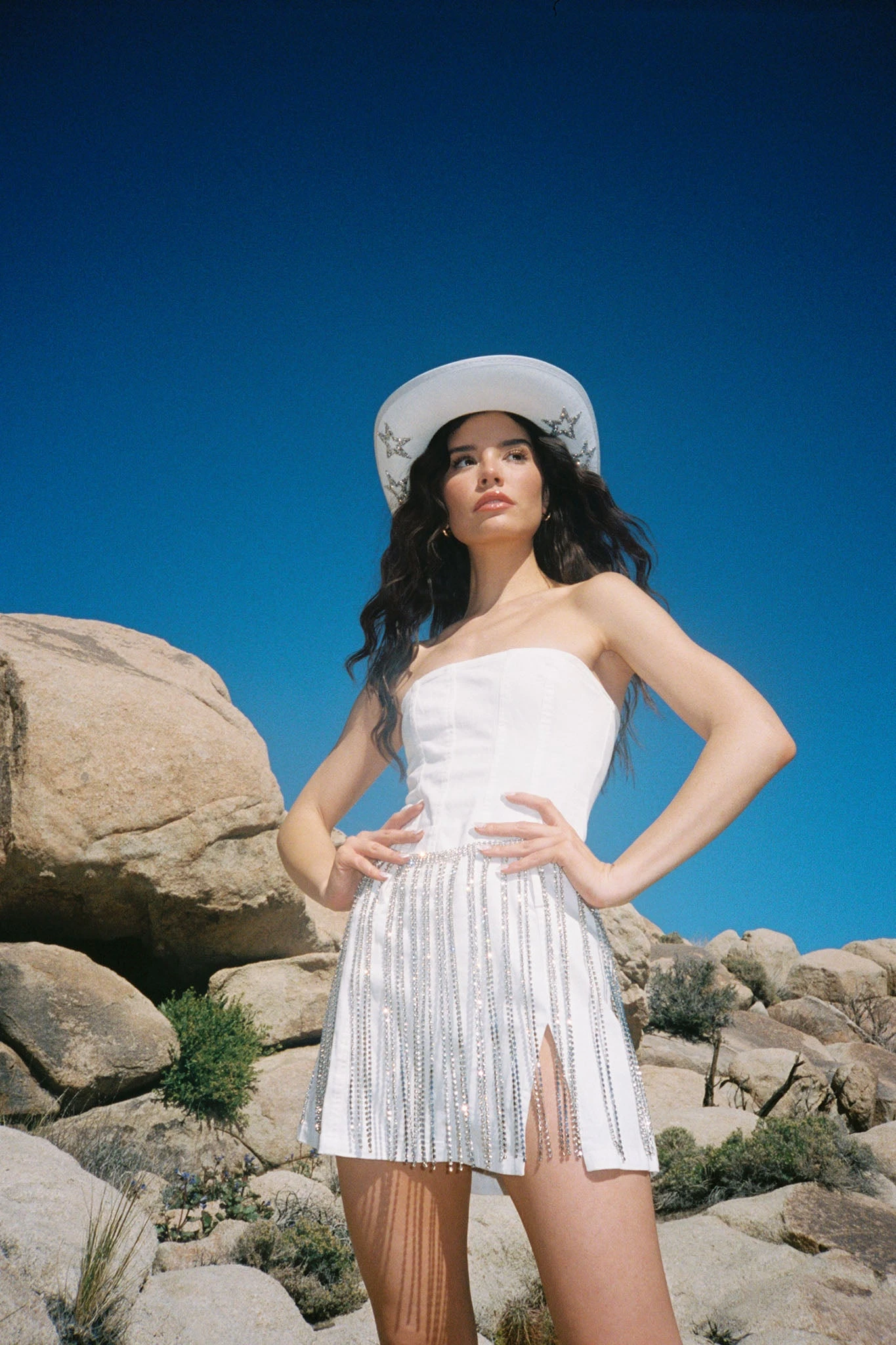 Light up the night in our stunning Venus Rising bodychain skirt. Featuring diamantes throughout, it’s perfect for a music festival or bachelorette weekend. Team it with a mini skirt and western boots for a hot look we are loving.