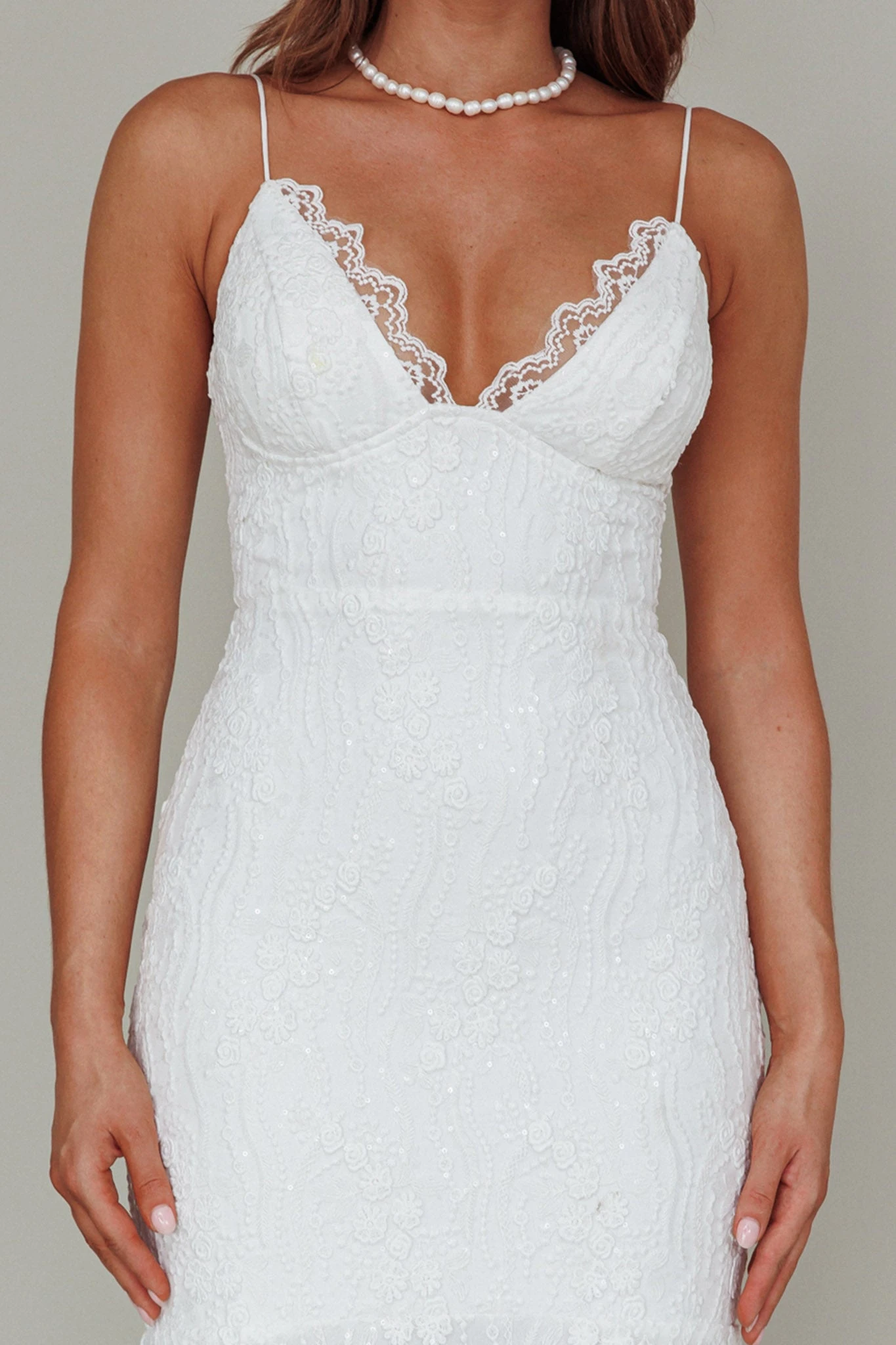 Make your grand entrance in our stunning Your Beloved maxi dress. We can’t get enough of its gorgeous lace throughout and on-trend mermaid silhouette. Perfect for walking down the aisle teamed with pearl jewelry and white mules.